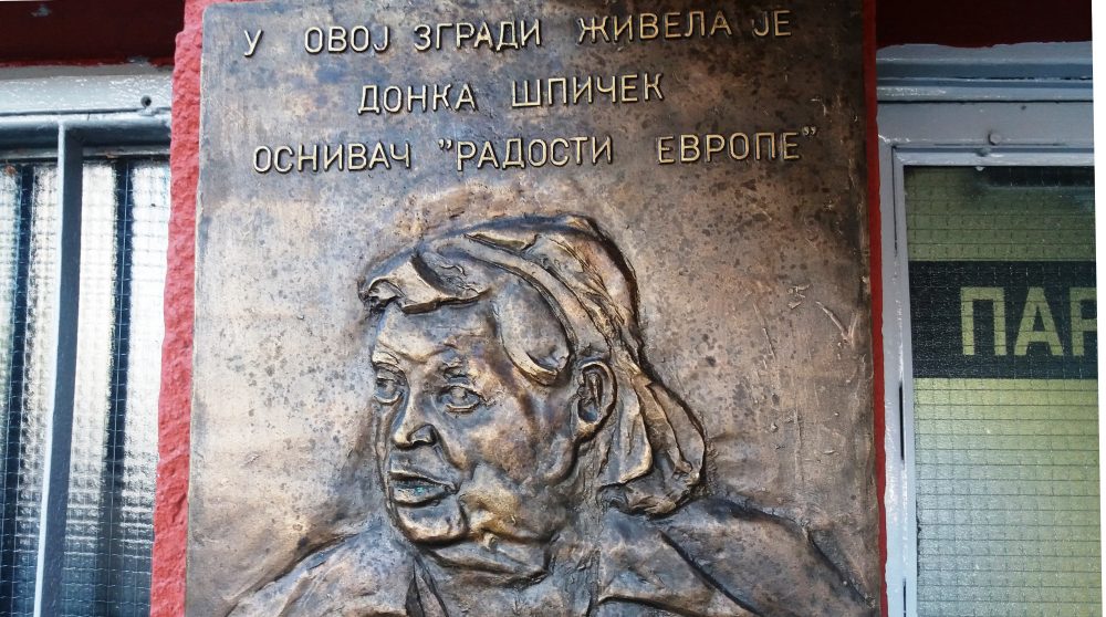 U ulici Pariske Komune, na jednoj zgradi stoji tabla na kojoj piše „U ovoj zgradi je živela Donka Špiček, osnivač „Radosti Evrope“. U nastavku, pored godine njenog rođenja i godine njene smrti, i svima poznati stih „Sve što raste htelo bi da raste“.