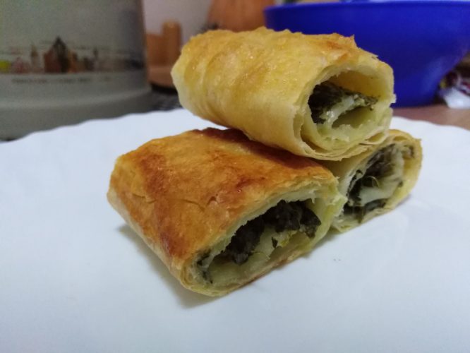 Kada ste premazali sve kore i poslagali ih, premažite ih od gore smesom od jaja i stavite da se peku u već zagrejanoj rerni na 200C od 20 do 30 minuta. Kad porumeni gotova je.