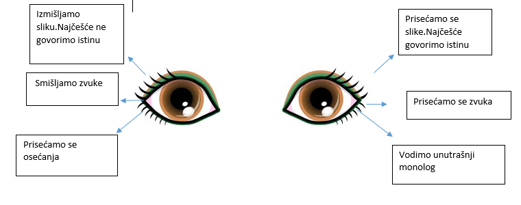 Na fotografiji ispod prikazano je značenje svakog smera pogleda tokom govora: